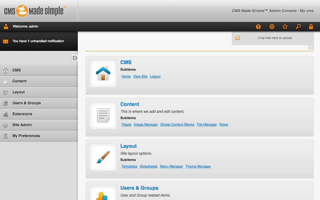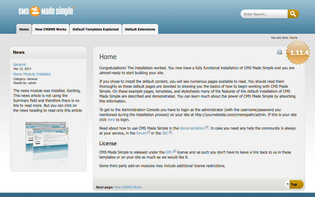 CMS Made SimpleCMS Made Simple is an open source content management application. Initially released in 2004, CMS Made Simple received the 2010 Most Promising Open Source Content Management System award by Packt Publishing. ![]() CMS Made Simple provides website developers with a simple, easy to use utility to enable building small-ish (dozens to hundreds of pages), semi-static websites. Typically CMS Made Simple is used for corporate websites and websites promoting a team or organization. There are other content management packages that specialize in building portals, or blogs, or article based content. CMS Made Simple can do much of this, but it is not our area of focus.