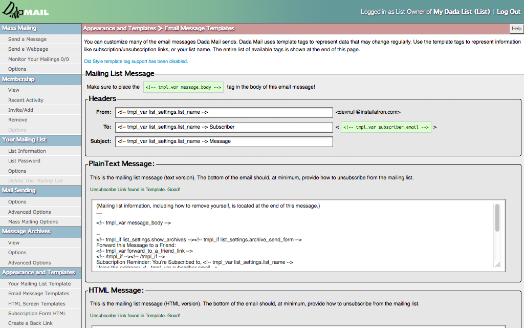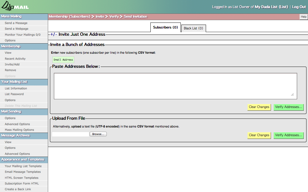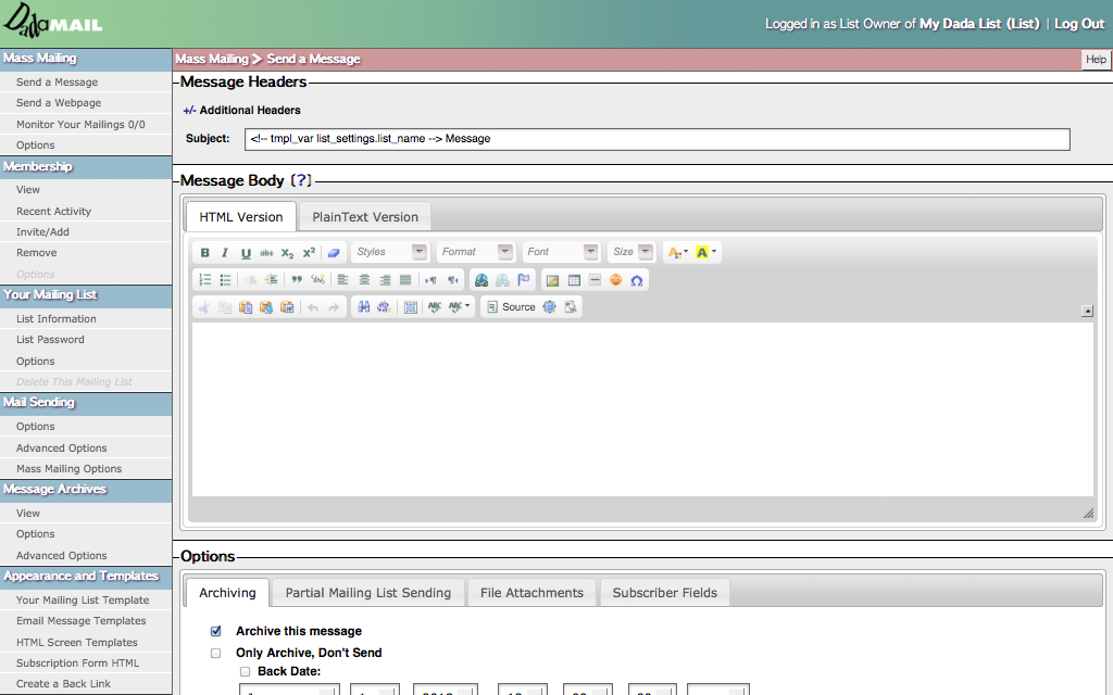 Dada MailDada Mail is an open source mailing list application developed in Perl. Dada Mail was initially released in 2000 under the name Mojo Mail and has been known as Dada Mail since 2003. ![]() Dada Mail helps you with managing an email mailing list, offering complete support for safe, closed-loop opt-in subscriptions, sending out mass mailings, keeping message archives and allowing you to share your messages in lots of neat ways.