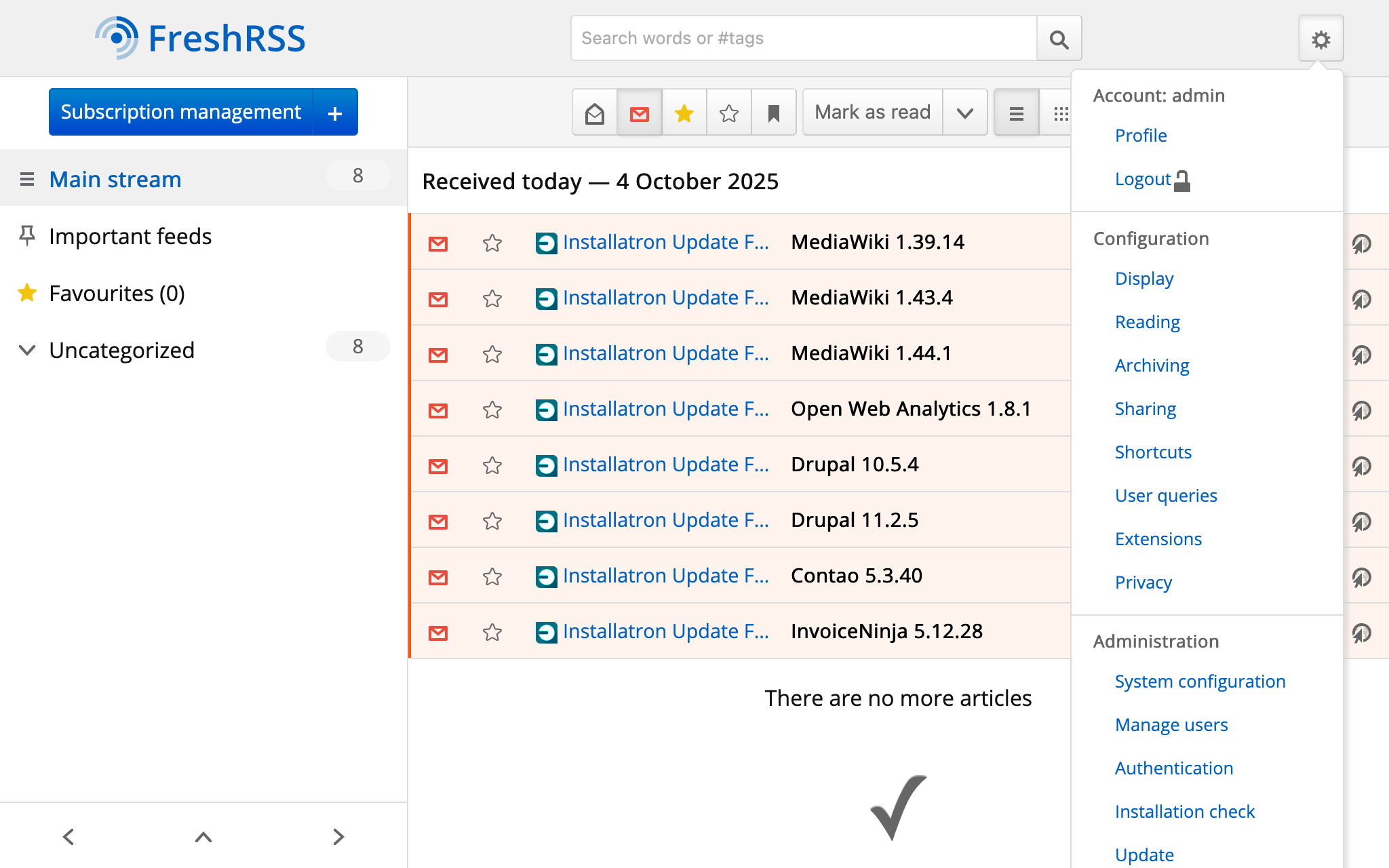 FreshRSSFreshRSS is an open source RSS and Atom aggregator. ![]() FreshRSS is lightweight, easy to work with, powerful, and customizable.