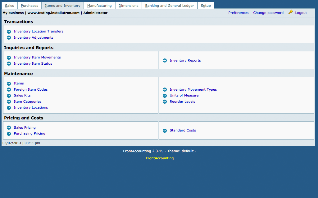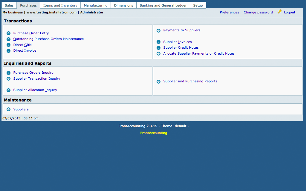 FrontAccountingFrontAccounting is an open source accounting application for small and medium businesses. Forked from webERP in 2007, FrontAccounting has been downloaded over 100,000 times. ![]() FrontAccounting is a simple but powerful system for the entire ERP chain. The software can be used as a free alternative to QuickBooks.