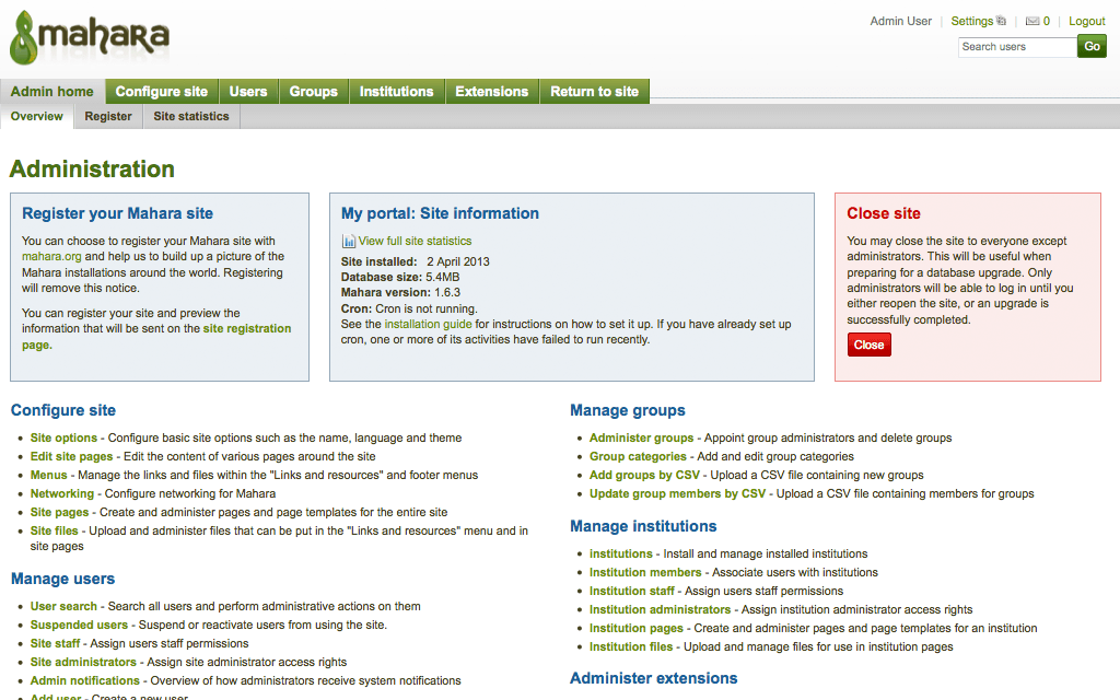 Other features of Mahara include: