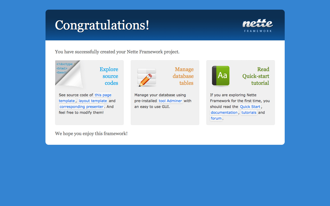NetteNette is an open source application framework. ![]() Stop solving repetitive tasks and getting distracted with details that make programming dull and unproductive. Nette Framework lets you work more effectively, focus on what's important and makes your code more readable and well-structured in the process.