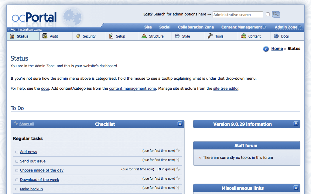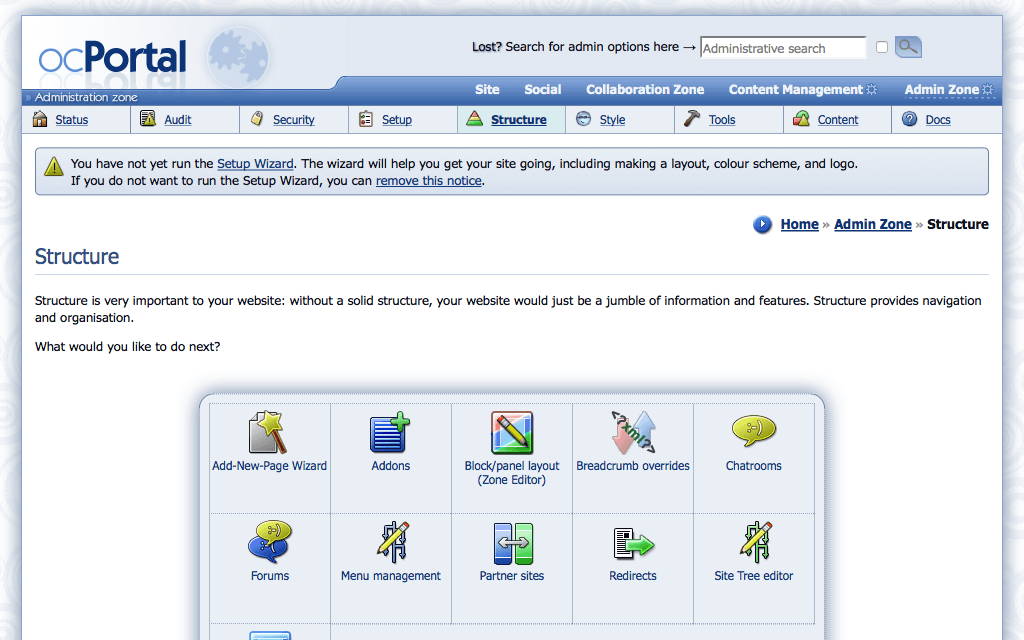 Composr CMSocPortal is a free content management and portal application. ![]() ocPortal is a content management application with many Web 2.0 and community features for building modern, sophisticated websites. ocPortal supports many types of content, including but not limited to galleries, news, newsletters, and it enables rich media and advertising to be integrated. Community features include forums, member blogs, chat rooms, WIKI, and content commenting/rating. ocPortal lets you decide how your site will look and behave. Features are plentiful, but also optional. Feature integration is at the core of the ocPortal philosophy - for example, the site-wide search engine, and the unified member profiles. Out-of-the-box your site will meet the highest accessibility and professional standards, and will appear higher in Google due to automatic SEO. Your website will automatically block and record hacking attempts, and you can control access in different ways such as via paid subscription. ocPortal is designed as the software that'll handle all your needs; you'll get much more than just a Content Management System.