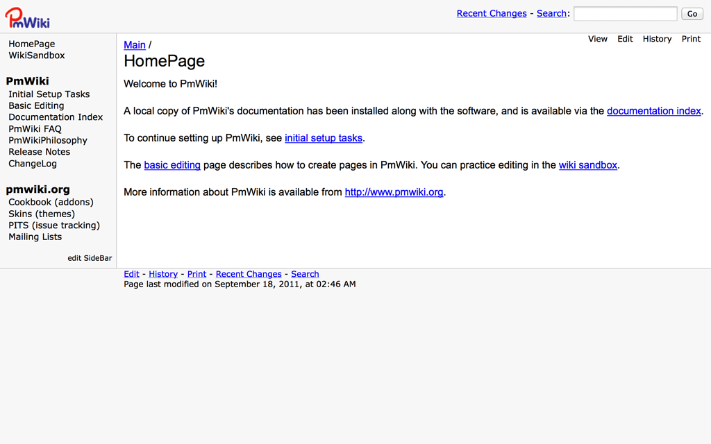 PmWiki is an open source wiki application that is extremely lightweight. PmWiki was initially released in 2004.