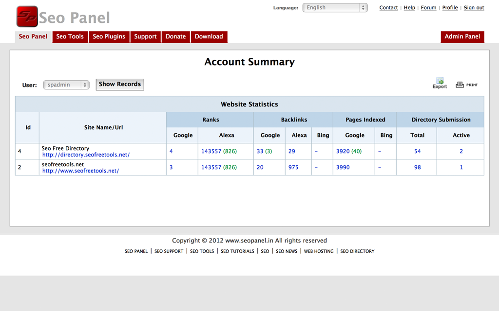 Seo PanelSeo Panel is an open source multi-website search engine optimization (SEO) monitoring application. Initially released in 2010, Seo Panel received 1st Runner Up in the 2011 Most Promising Open Source Project awards by Packt Publishing. ![]() Seo Panel is a search engine optimization (SEO) toolkit that empowers you with the latest and most useful tools that increase and track the search engine performance of your web sites. A number of plugins are also available for Seo Panel to extend its functionality.