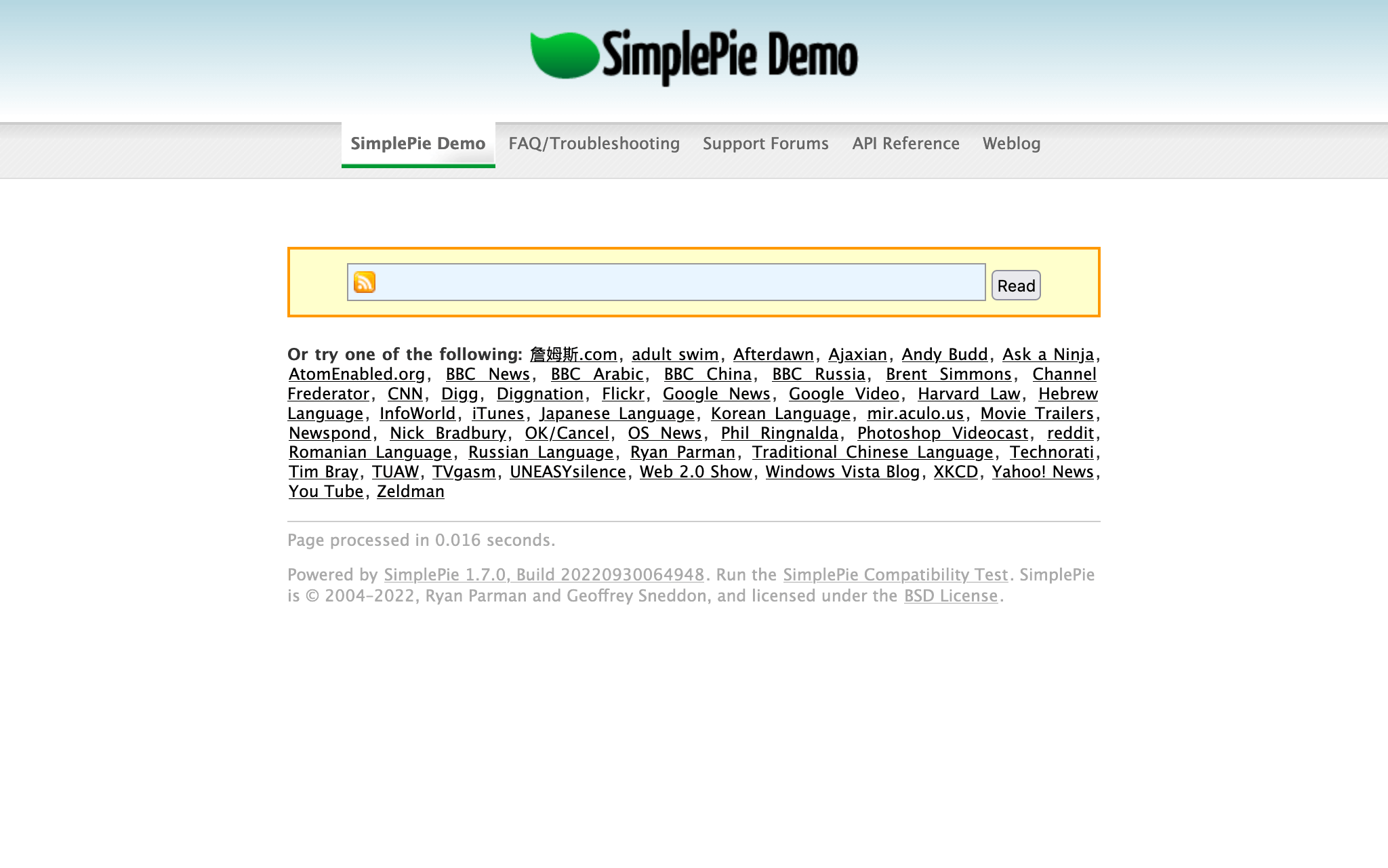SimplePieSimplePie is an RSS reader and development framework. ![]() SimplePie is a very fast and easy-to-use feed parser, written in PHP, that puts the 'simple' back into 'really simple syndication'.