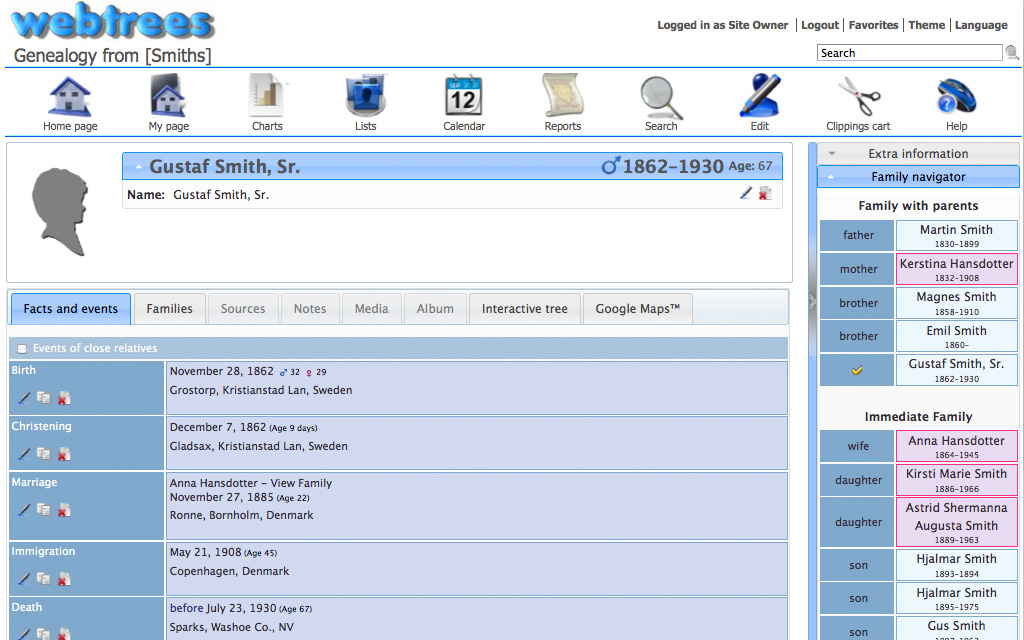 webtreeswebtrees is an open source genealogy application. webtrees forked from PhpGedView in 2010. ![]() webtrees is a genealogy program which allows you to view and edit your genealogy on your website. webtrees works from standard GEDCOM files, and is therefore compatible with every major desktop application. Furthermore, it has full editing capabilities, full privacy functions, supports multimedia like photos and document images, and has tools to simplify the process of collaborating with others working on your family tree.